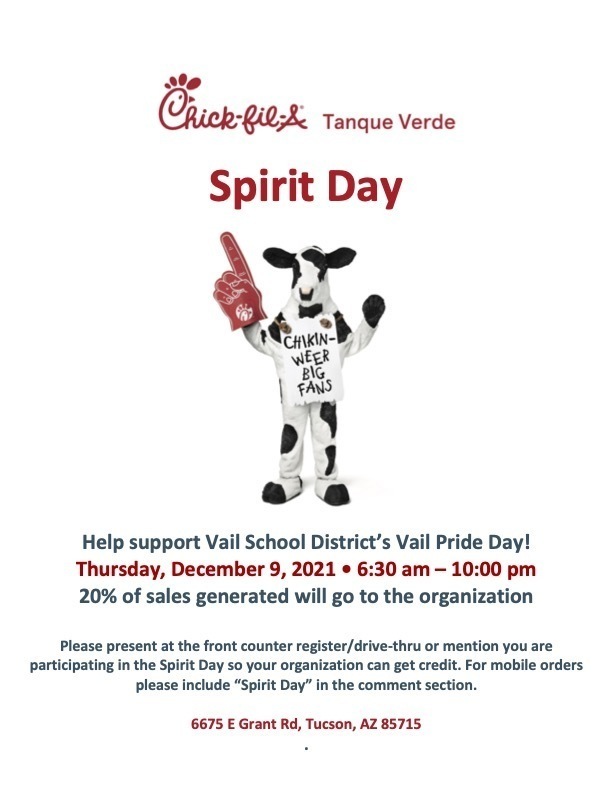 Looking for dinner to cook itself this Thursday? Join us at the Chick-fil-A on Grant Road. 20% of the sales that night will help fund Vail Pride Day! See you there!