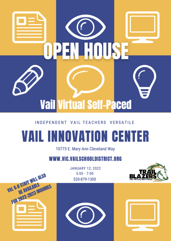 Welcome to the Vail Innovation Center home for the Trailblazers! Join us on January 12th for an Open House to learn more about Vail Virtual Self Paced High School.