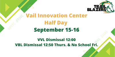 Vail Innovation Center will be holding half days September 14/15 for Parent Teacher Conferences.